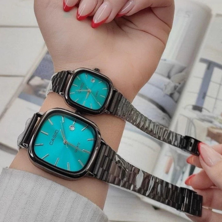 ست ساعت مردونه و زنونه کاسیو اولد مانی مشکی صفحه آبی استیل رنگ ثابت