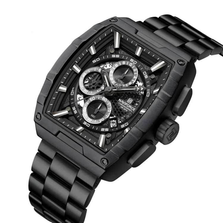 ساعت مچی مردانه ارجینال نیوی فورس Naviforce سه موتور فعال ضد آب مشکی ارسال رایگان