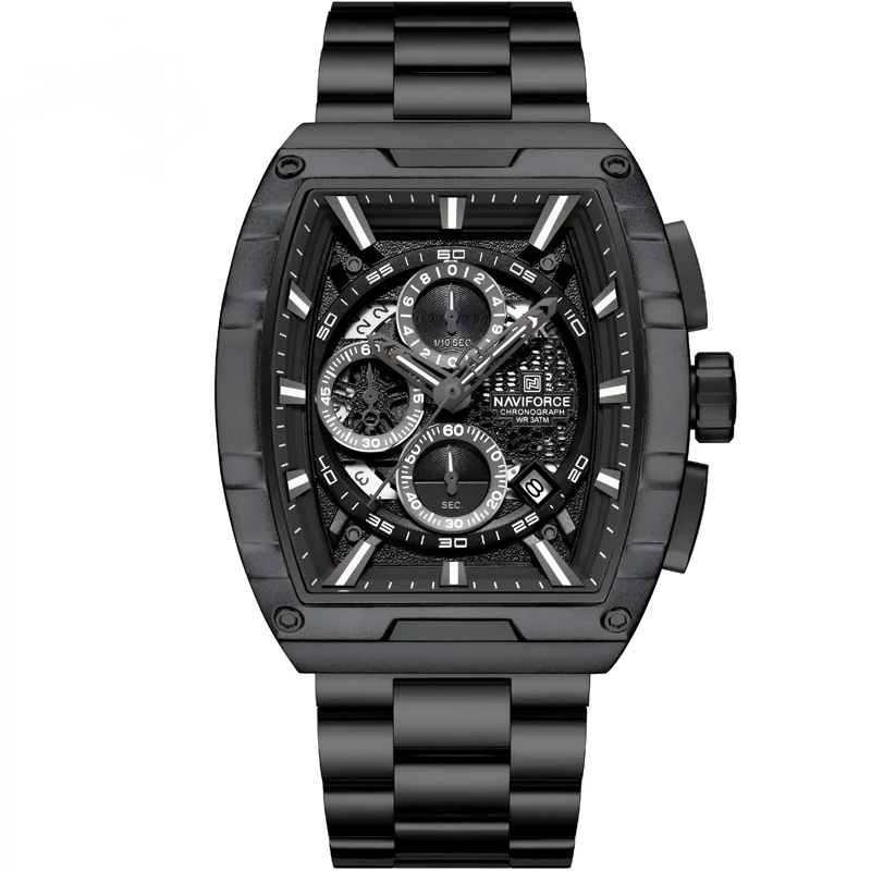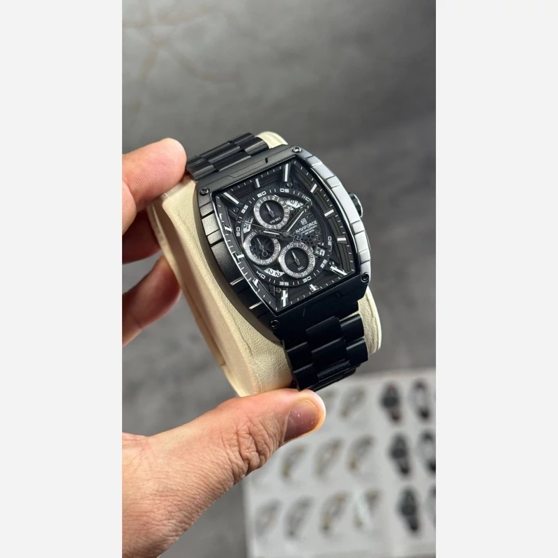 ساعت مچی مردانه ارجینال نیوی فورس Naviforce سه موتور فعال ضد آب مشکی ارسال رایگان