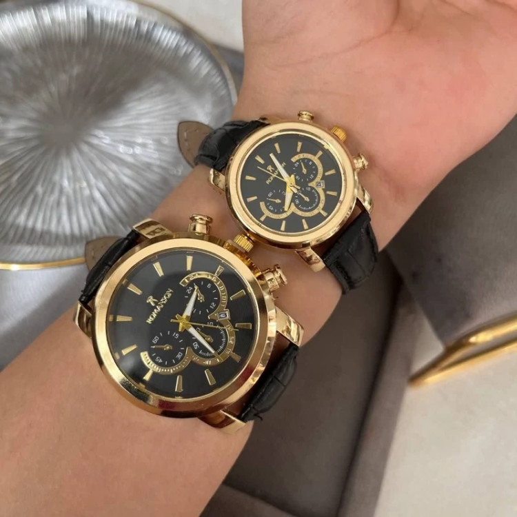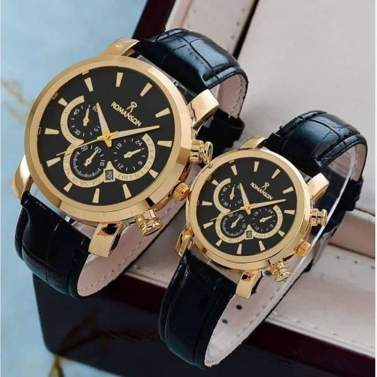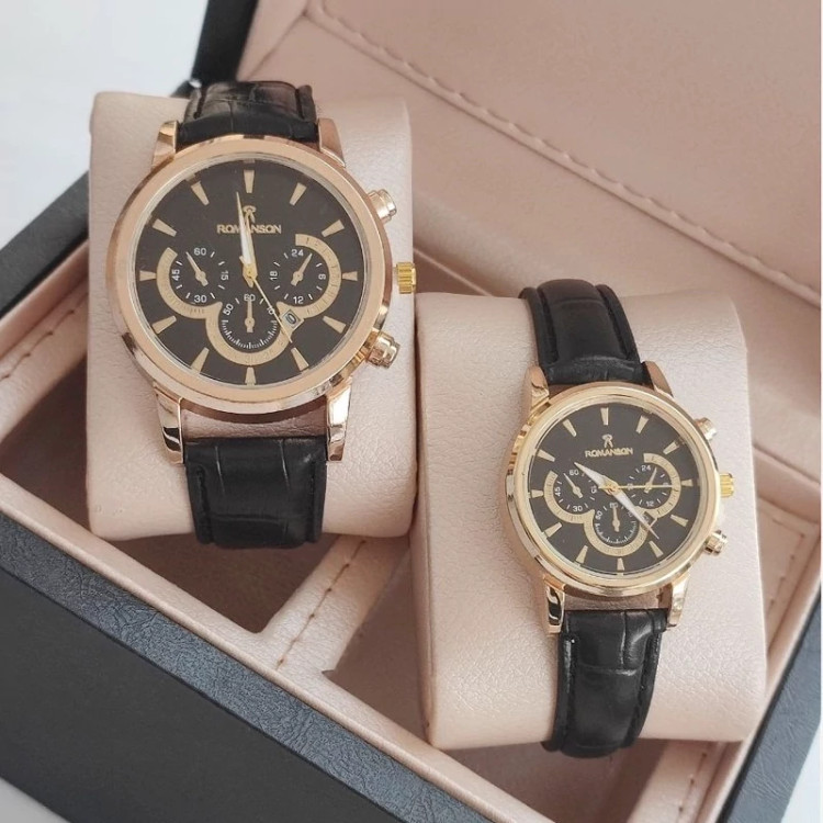 ست ساعت مردونه زنونه بند چرمی رومانسون Romanson مشکی طلایی