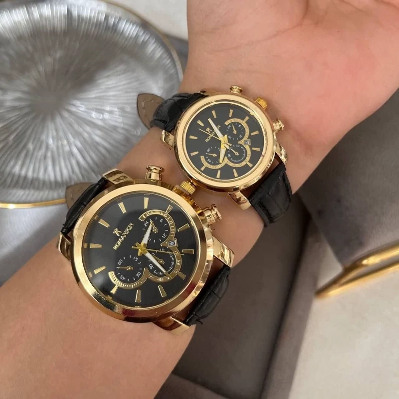 ست ساعت مردونه زنونه بند چرمی رومانسون Romanson مشکی طلایی