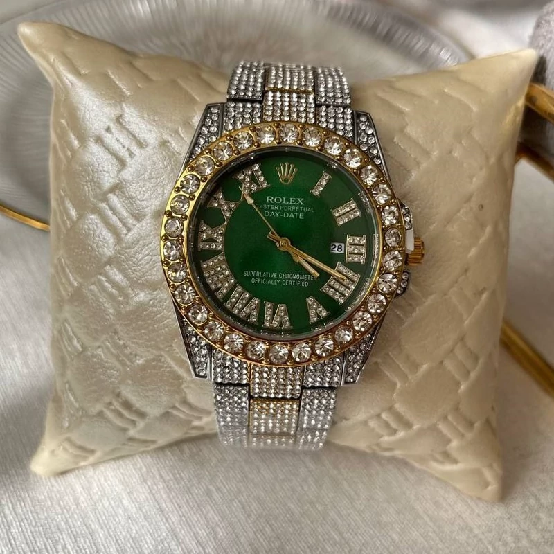 ساعت زنونه رولکس فول استون نگین دار صفحه سبز