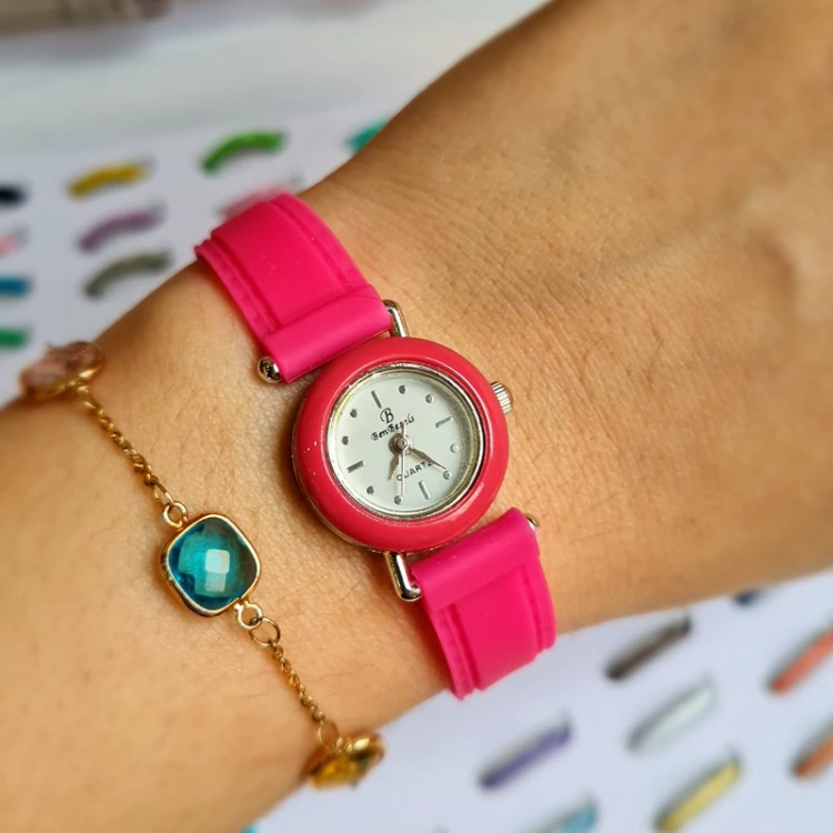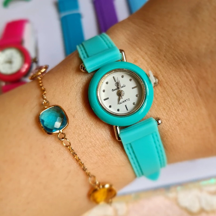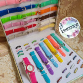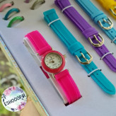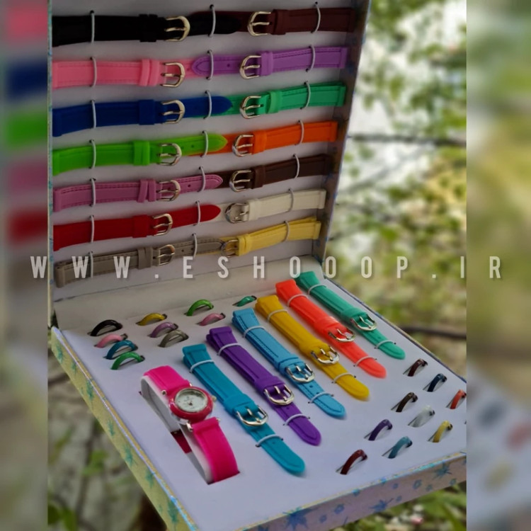 ساعت دخترانه 21 رنگ با 21 بند رنگی سیلیکونی قابل تعویض و جعبه مخصوص