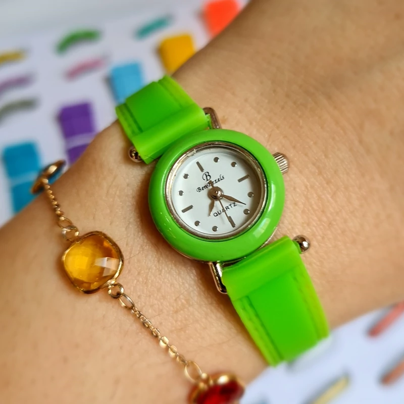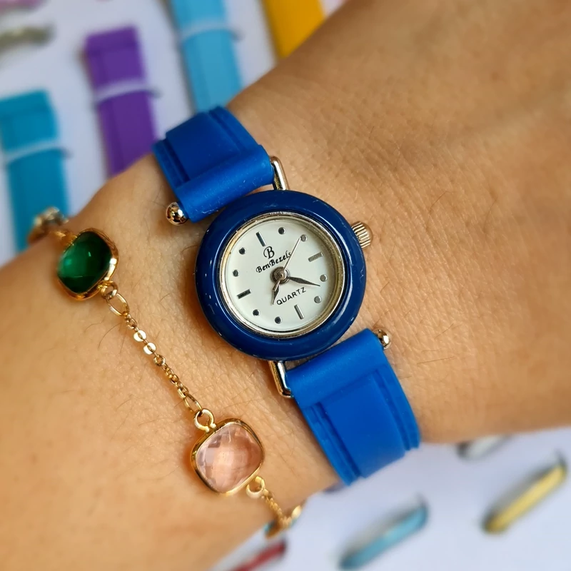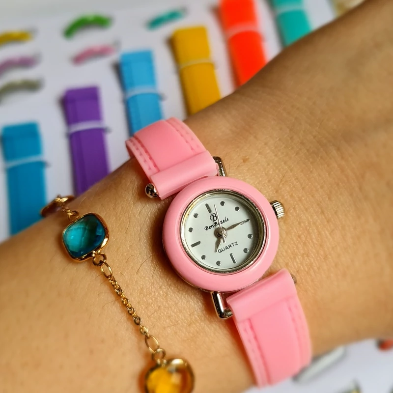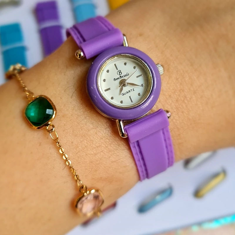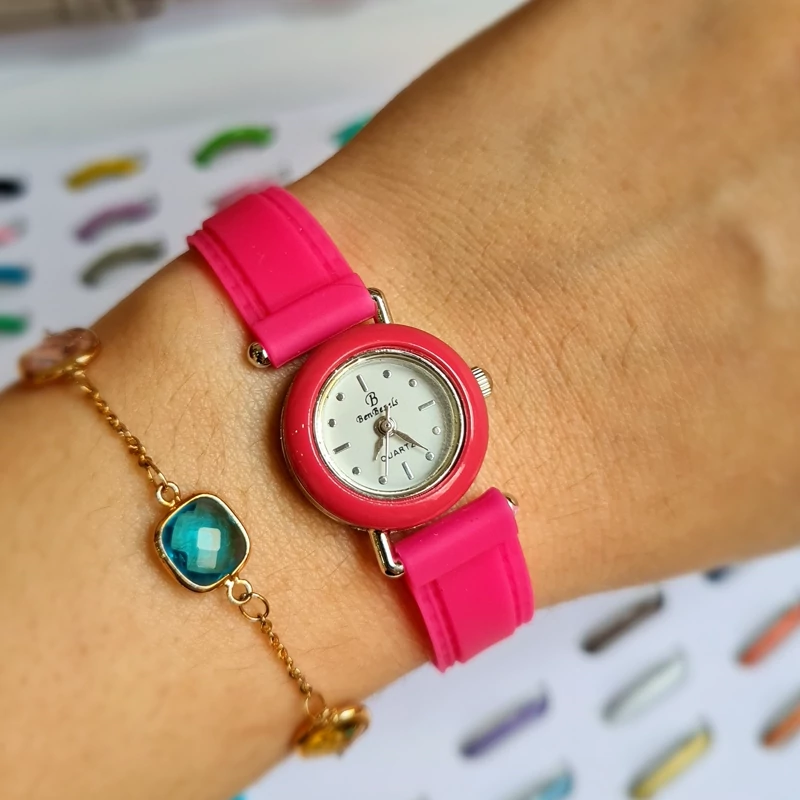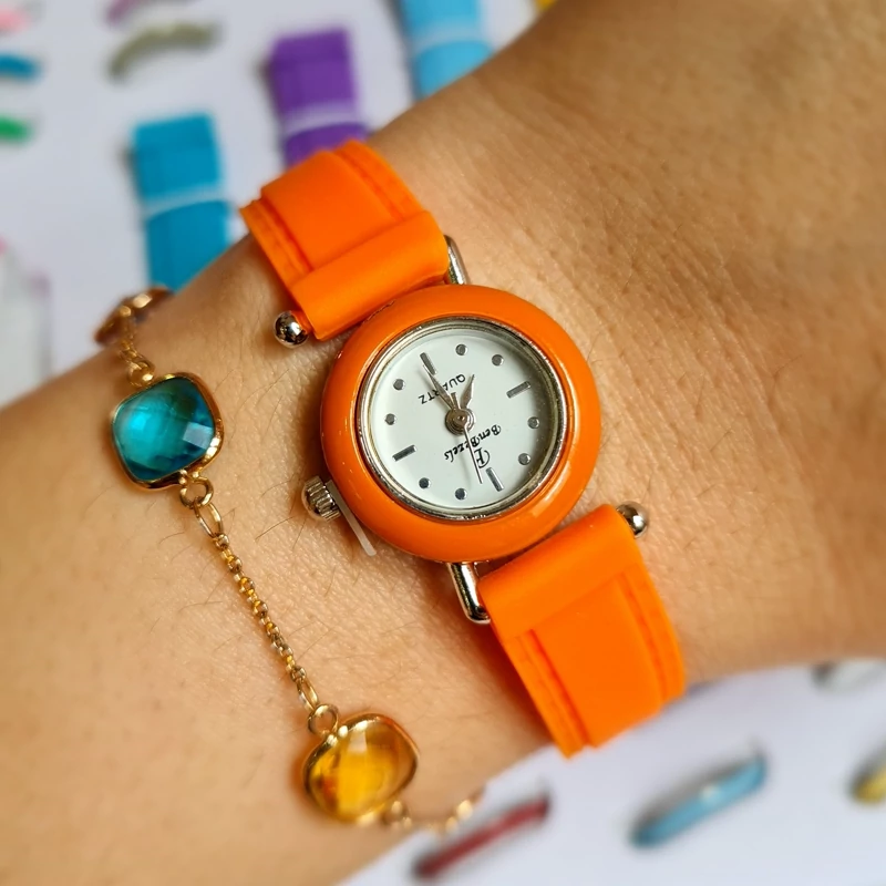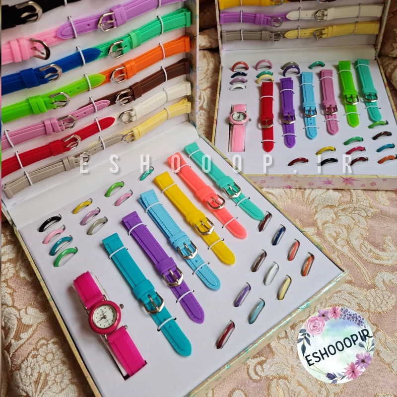 ساعت دخترانه 21 رنگ با 21 بند رنگی سیلیکونی قابل تعویض و جعبه مخصوص