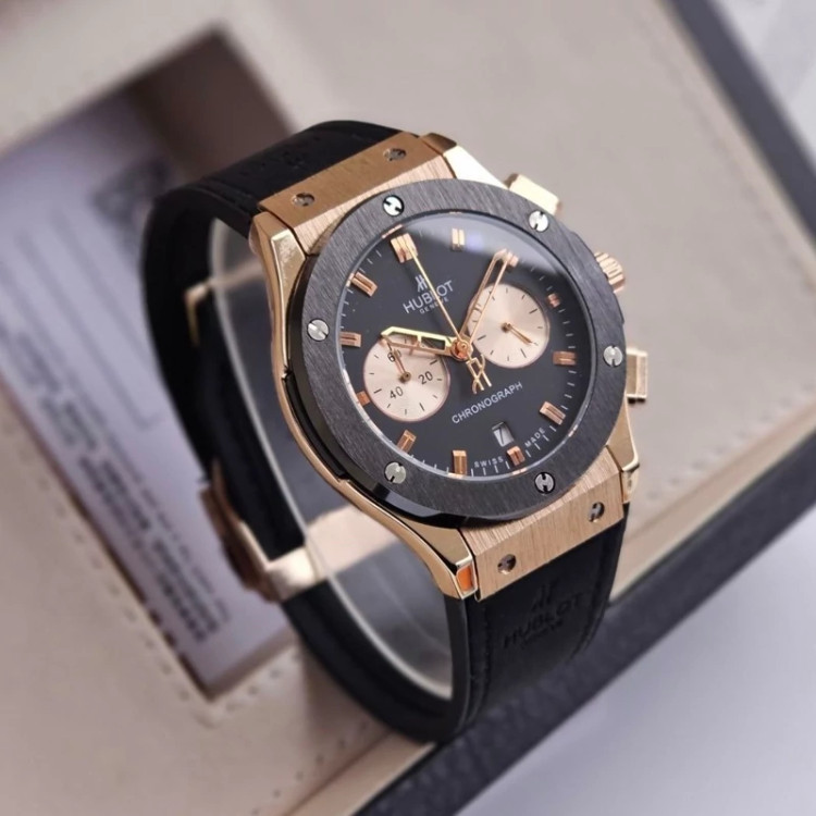 ساعت مچی مردونه هابلوت hublot کرنوگراف سه موتور فعال بند رابر مشکی