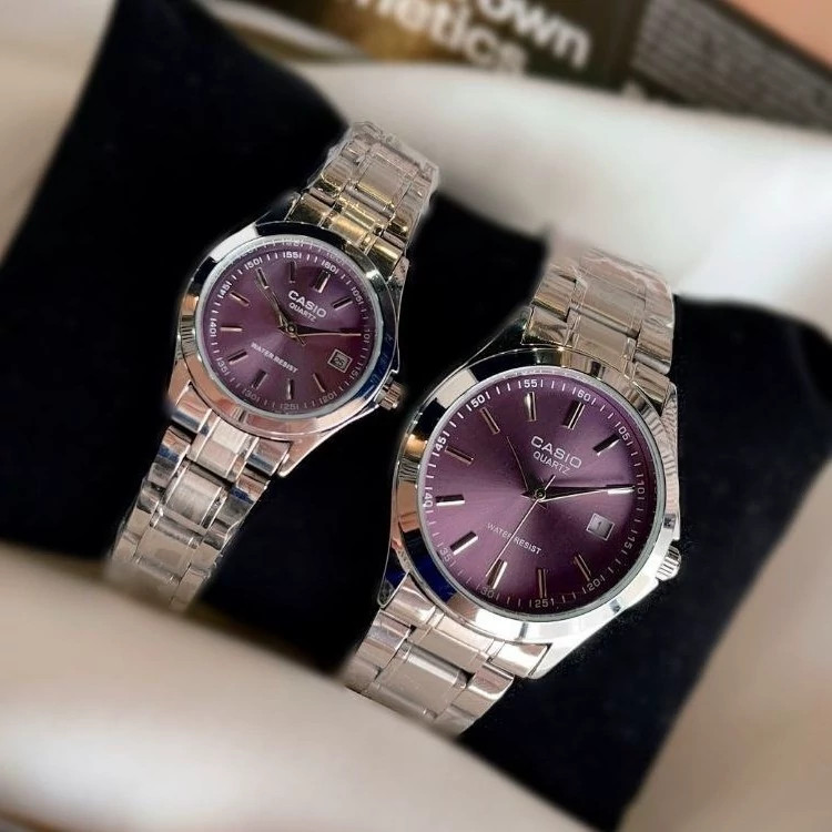 ست ساعت مردونه و زنونه کاسیو casio استیل صفحه بنفش