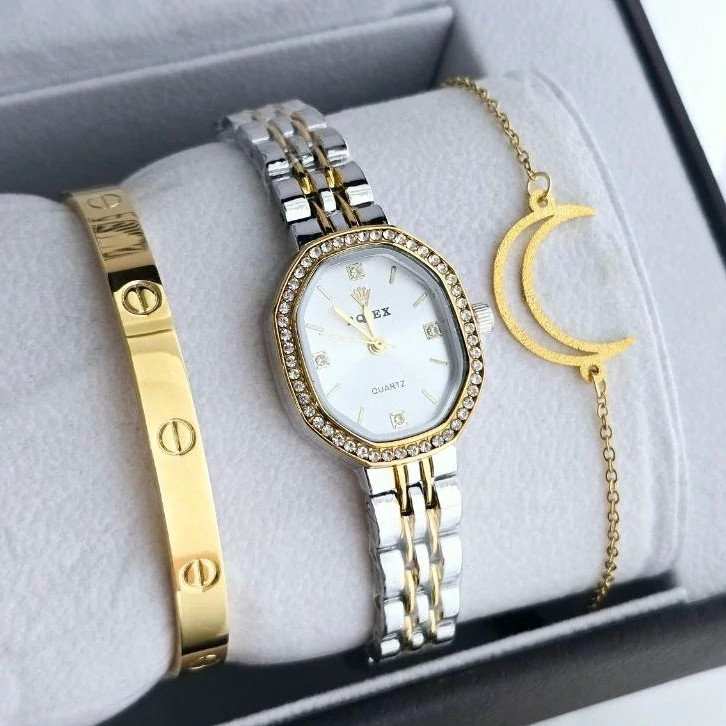 ست ساعت زنانه رولکس با دستبند کارتیر و استیل ماه