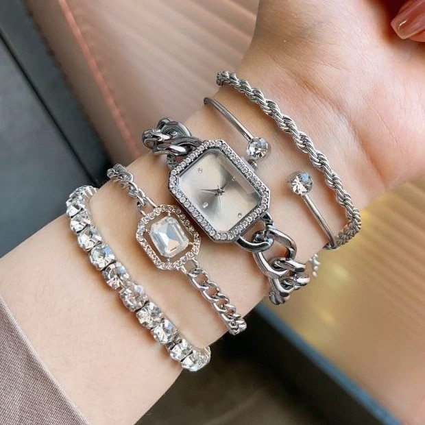 ساعت مچی زنانه نقره ای با ست دستبند کارتیر
