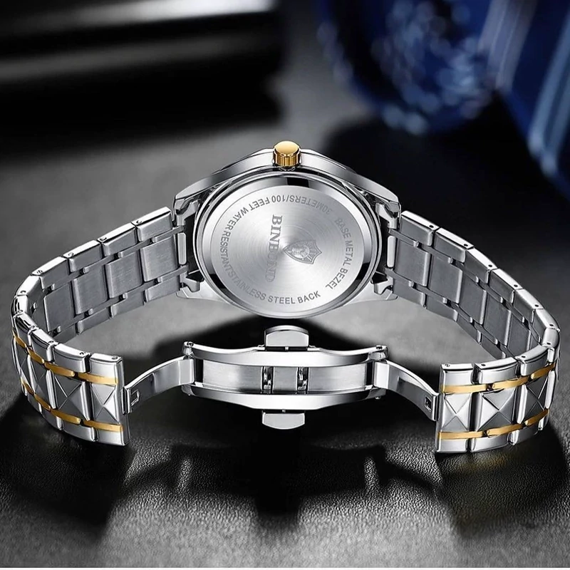 ساعت مچی مردانه و زنانه اورجینال دو تقویم فول استیل رنگ ثابت ضدآب BINBOND