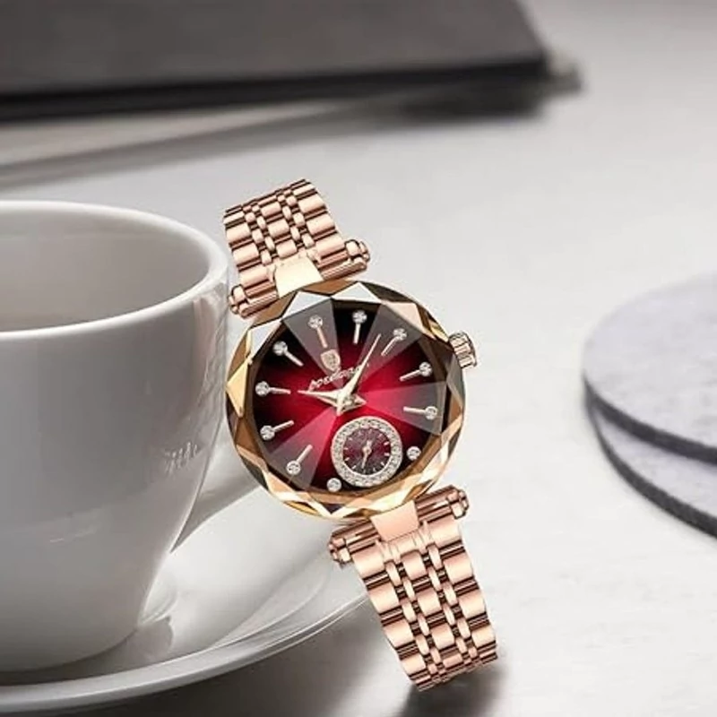 ساعت مچی زنانه پوداگار p719 اورجینال Poedagar شیشه الماسی قرمز