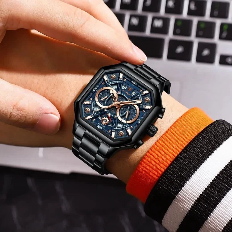 ساعت مچی مردانه اورجینال پوداگار poedagar ضد آب مشکی سرمه ای