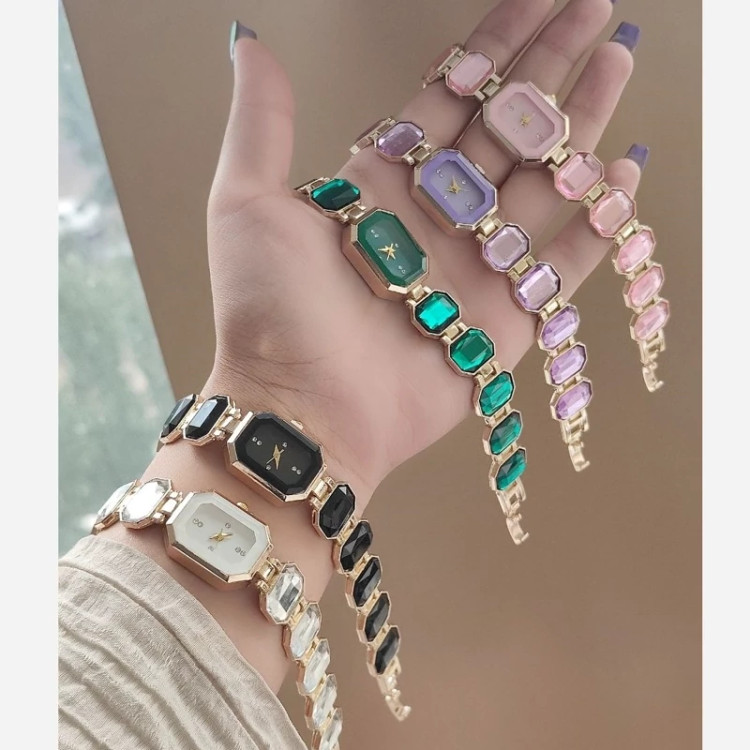 ساعت زنانه بند نگین دار جواهری عقربه ای