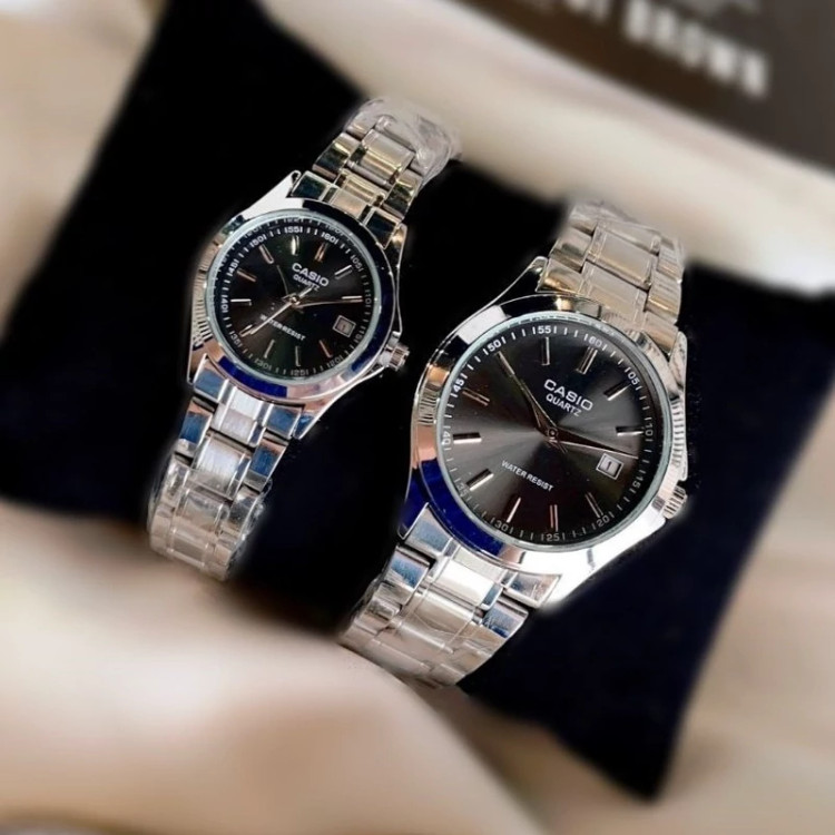 ست ساعت مردونه و زنونه کاسیو casio استیل صفحه مشکی