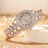 ساعت مچی زنانه فول نگین رزگلد با بند و صفحه نگین دار
