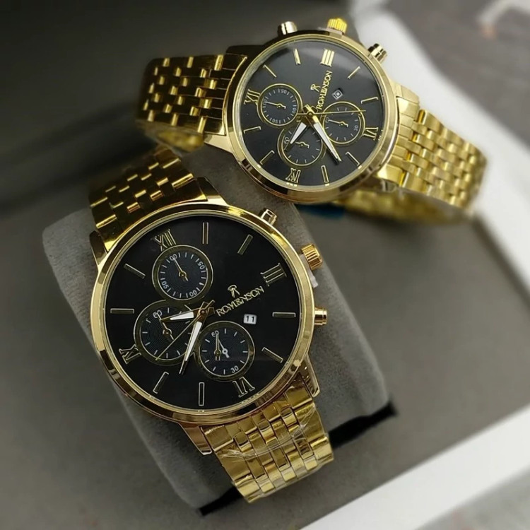 ساعت ست مردانه و زنانه رومانسون رنگ طلایی با کیفیت عالی و تقویم دار
