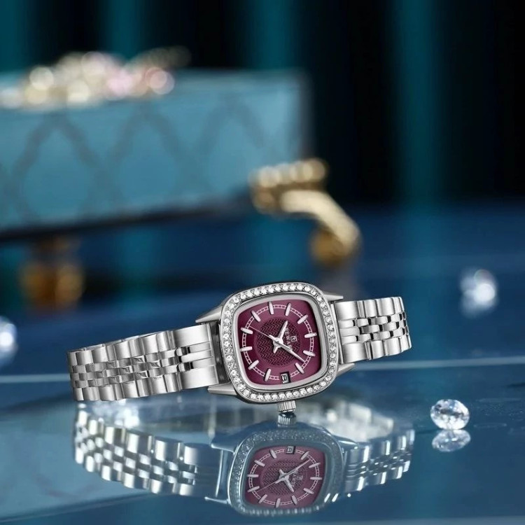 ساعت مچی زنانه ریوارد Revard موتور ژاپن اورجینال بند استیل دور نگین صفحه آلبالویی
