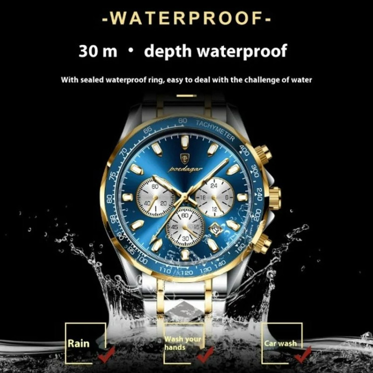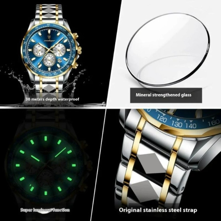 ساعت مچی مردانه پوداگار اورجینال کرنوگراف 3 موتور فعال poedagar صفحه سرمه ای