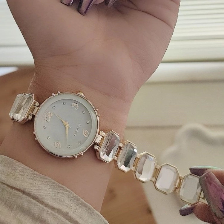 ساعت زنانه دخترانه بند نگین دار جواهری سفید عقربه ای