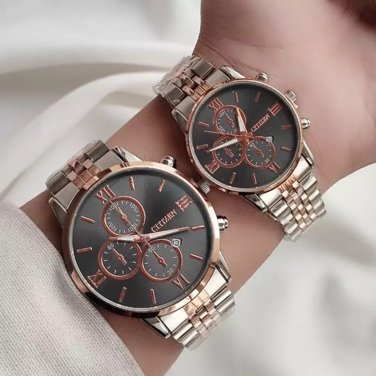 ساعت زنانه و مردانه سیتیزن citizen نقره ای رزگلد با تقویم فعال