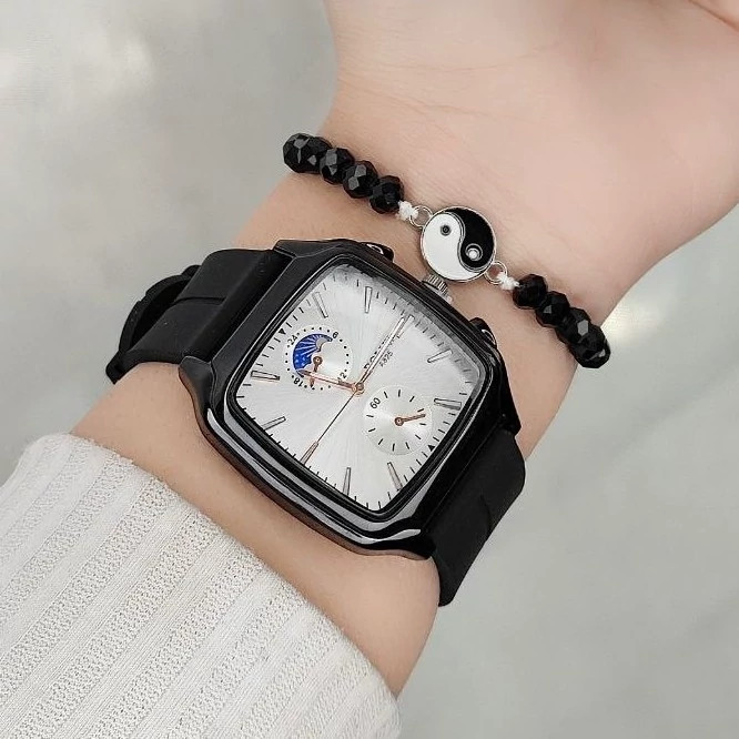 ساعت دخترانه طرح مستطیلی مربعی برند بولون با بند سیلیکونی مشکی