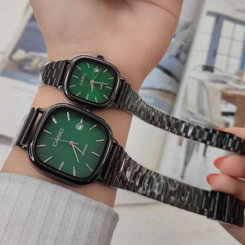 ست ساعت مردونه و زنونه کاسیو اولد مانی مشکی صفحه سبز