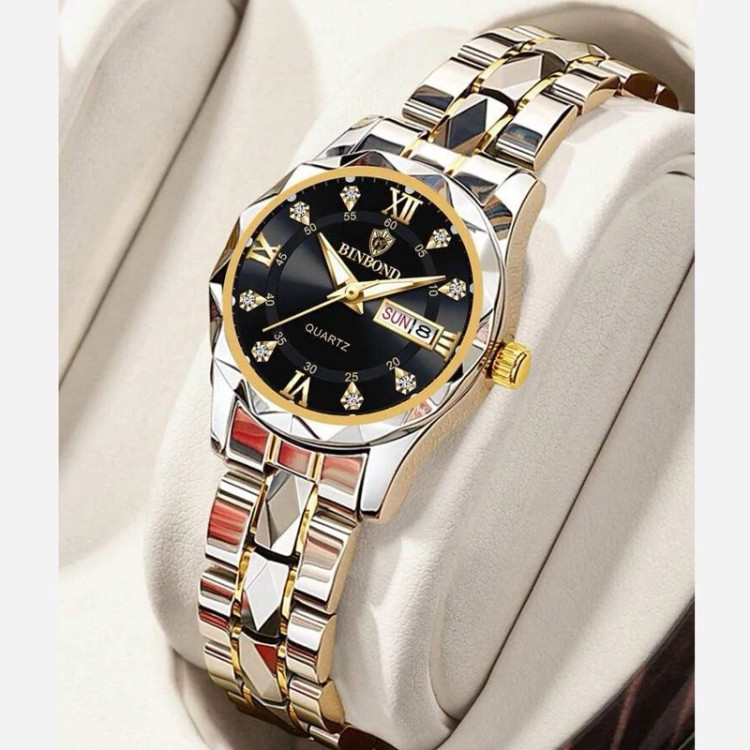 ساعت مچی زنانه اورجینال دو تقویم فول استیل رنگ ثابت و ضد اب بینبند دارای رنگبندی BINBOND مشکی