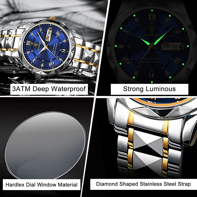 ساعت مچی مردانه اورجینال پوادگار دو تقویم ضد آب رنگ ثابت پودگار poedgar