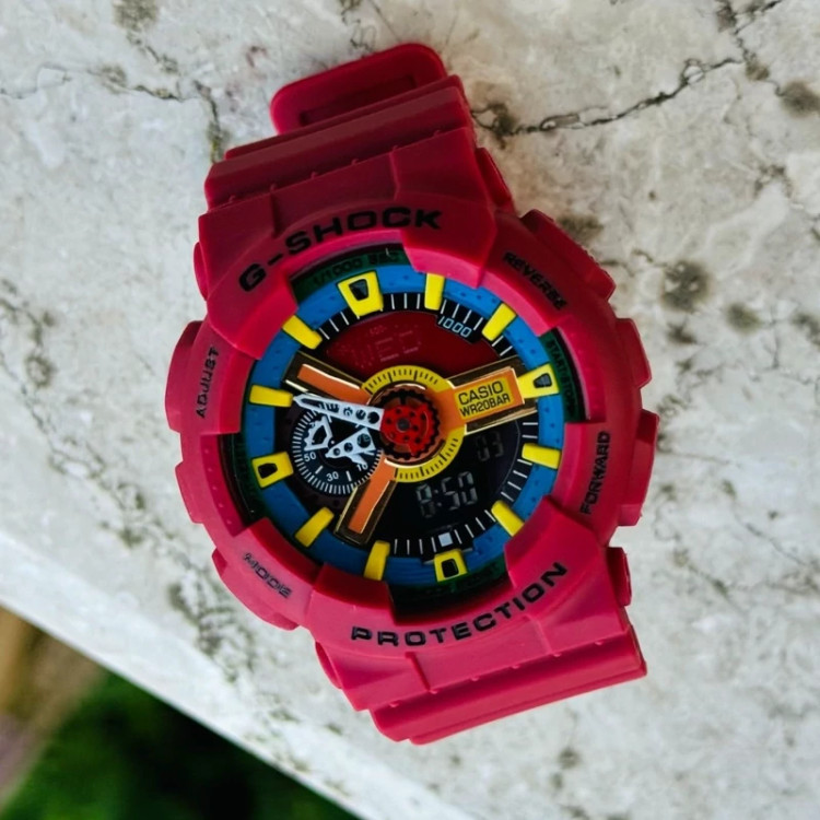 ساعت مچی جی شاک جیشاک GA110 قرمز (جیشاک GShock) ، صد در صد ضدآب ، تنظیم اتوماتیک با پایتخت کشورها ، اتولایت دار