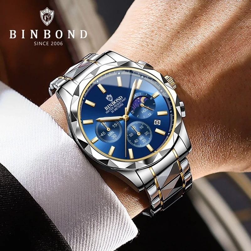 ساعت مچی مردانه بین باند اورجینال سه موتور فعال کرنوگراف رنگ ثابت بینبند binbond